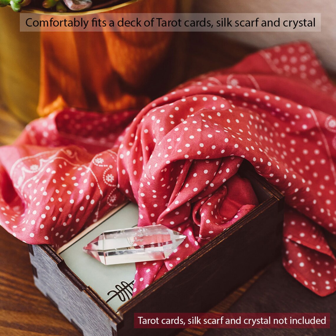 Tarot cards, silk scarf and crystal are not included