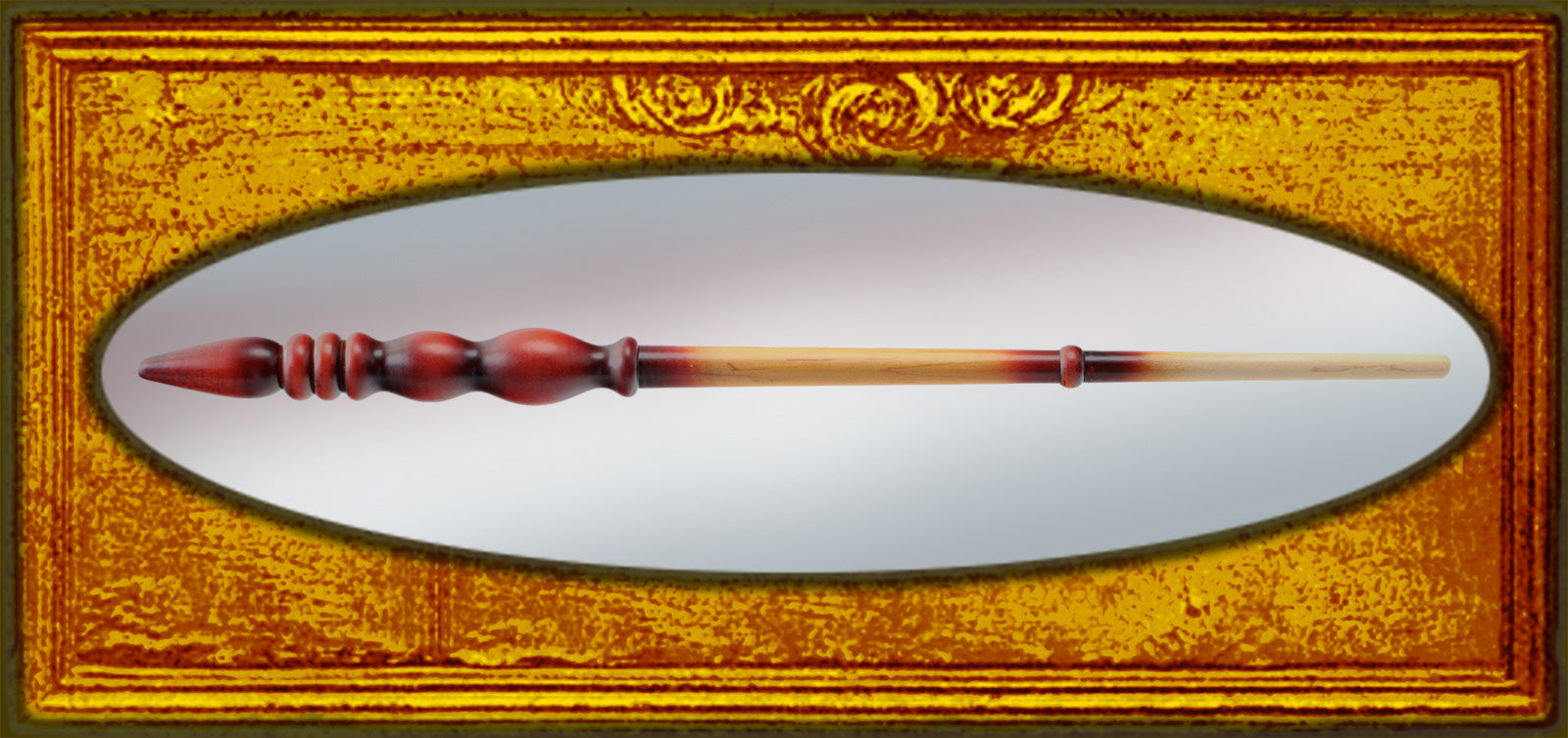 A beautiful red and natural color.This wand is carved and finished by hand from our finest Whirlwood Hard Maplewood.